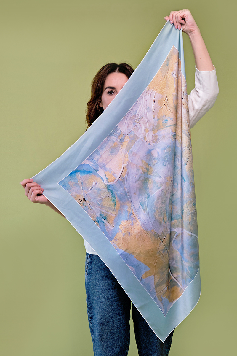 Хустинка Jellyfish. Ми не розповідали, але володіємо таємною суперсилою! Ми вміємо перетворювати жінок на суперзірок зі сторінок глянцевих журналів. Один ніжний дотик шовку і ти Одрі Хепберн.