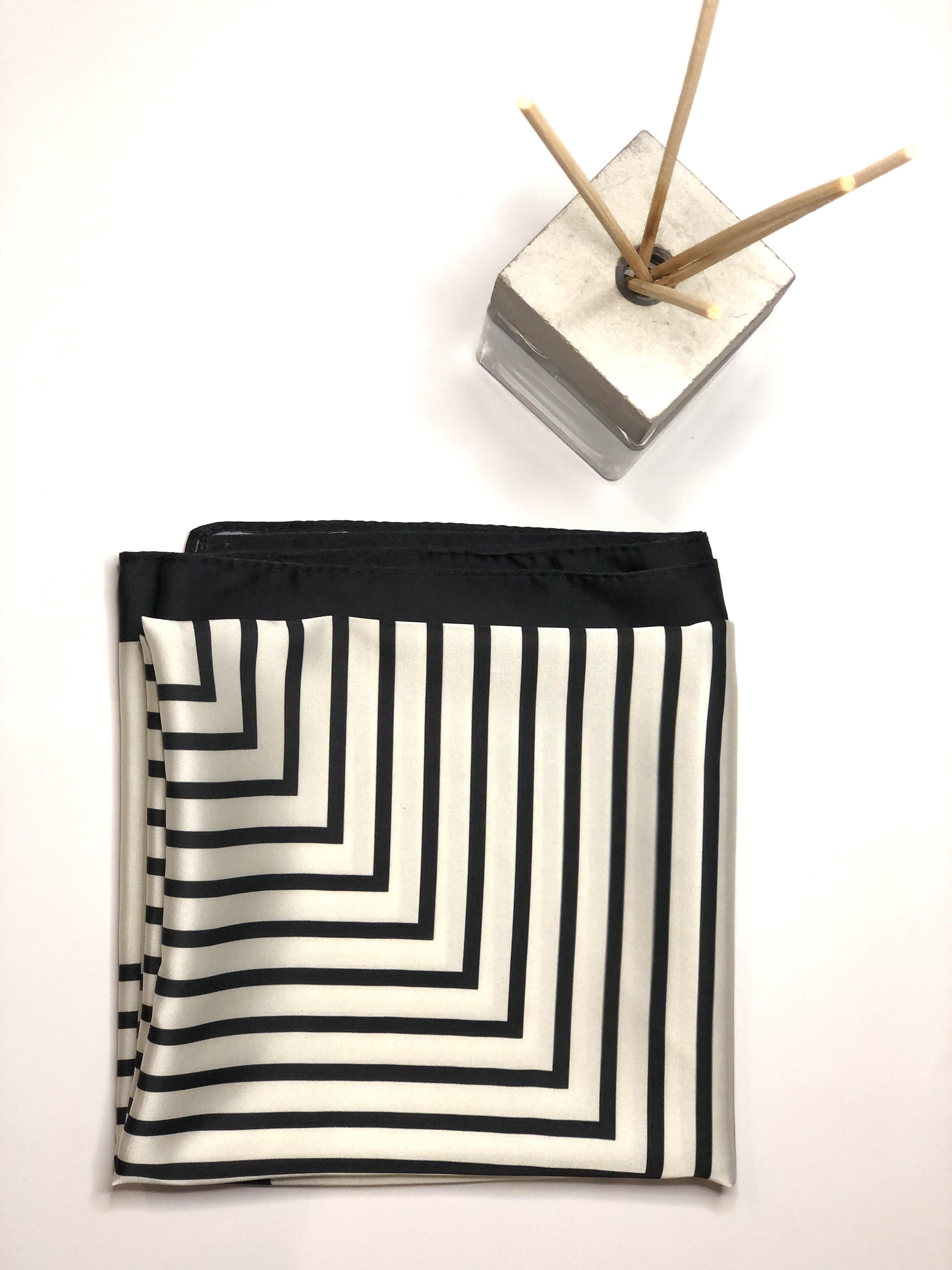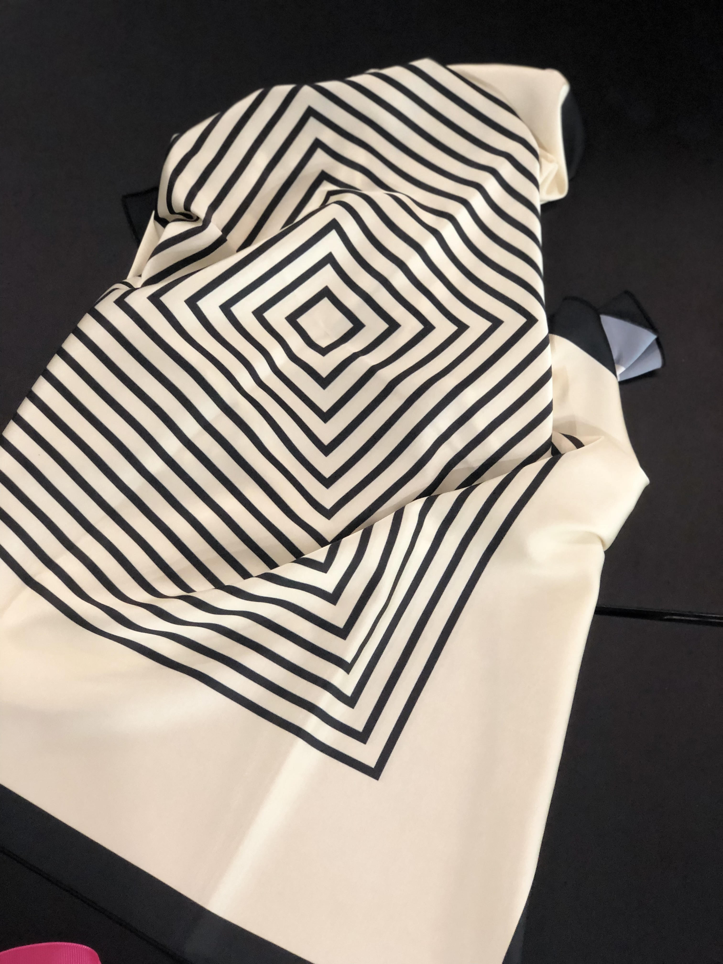 Шовкова хустинка Lines вирізняється своїм сучасним дизайном з геометричними строгими лініями, які додають елегантності та виразності її вигляду. Вона ідеально підходить для додання акценту до будь-якого образу, надаючи йому вишуканості та оригінальності.