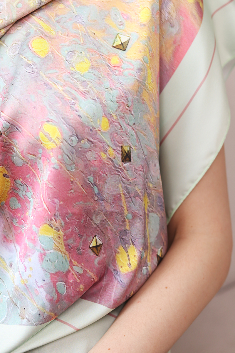 Мистецтво дозволяє експериментувати, зображати не лише те, що складно реалізувати чи є забороненим, а й ще неіснуюче чи неможливе. Дозвольте собі маленькі експерименти… Хустинка Stardust.